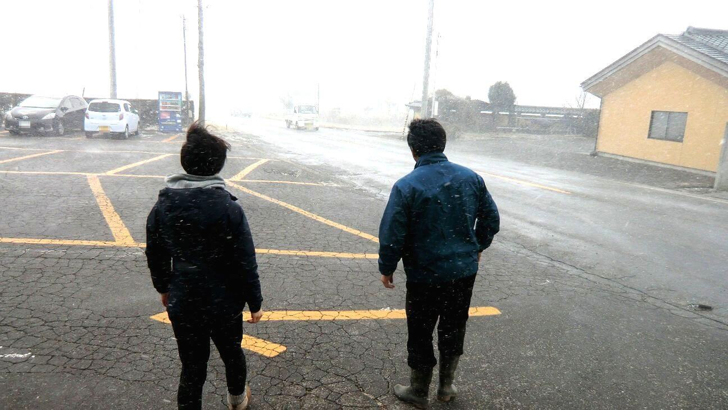 いかに凄まじい吹雪なのかを皆様にご覧頂くため、岡村と荒井が体を張ってお伝え致します!笑