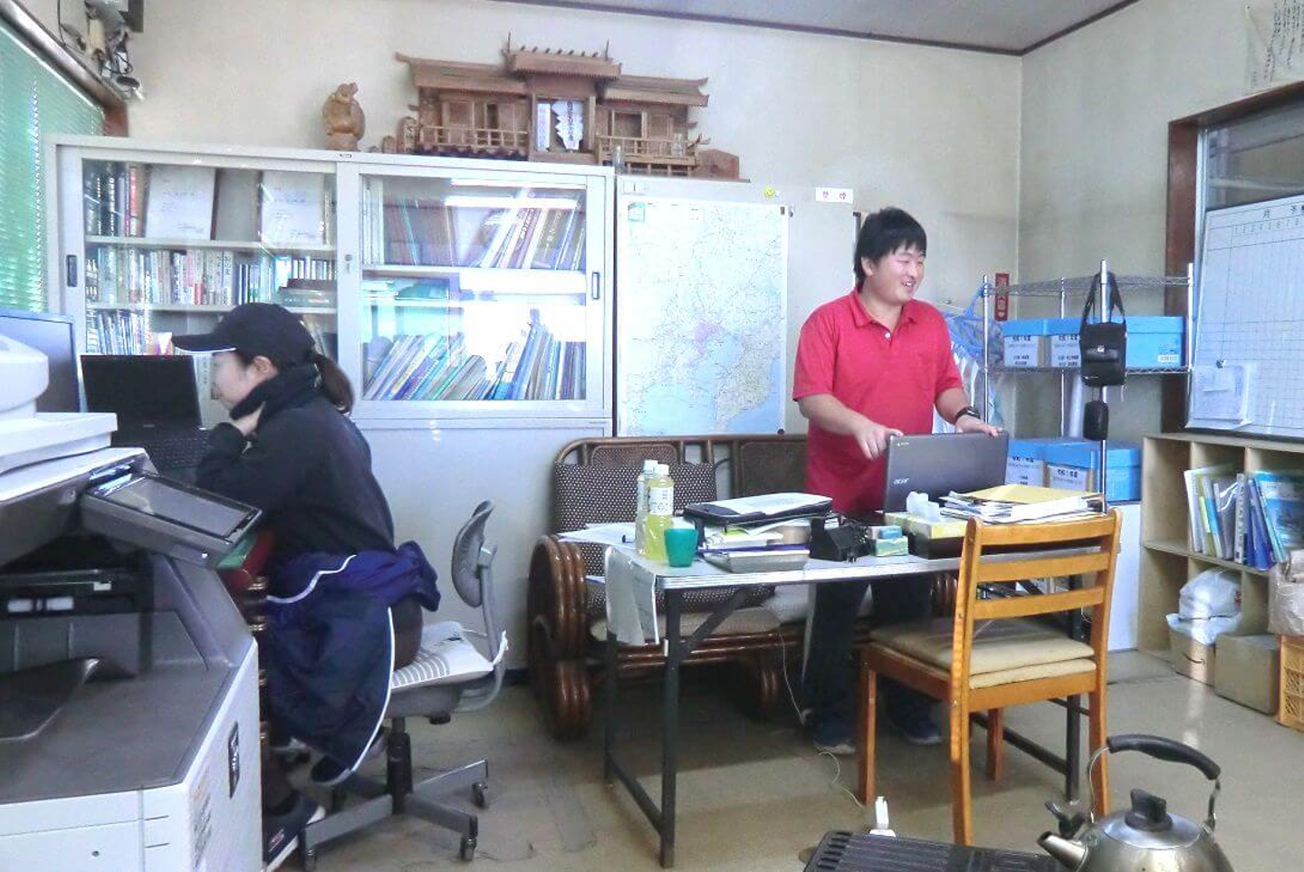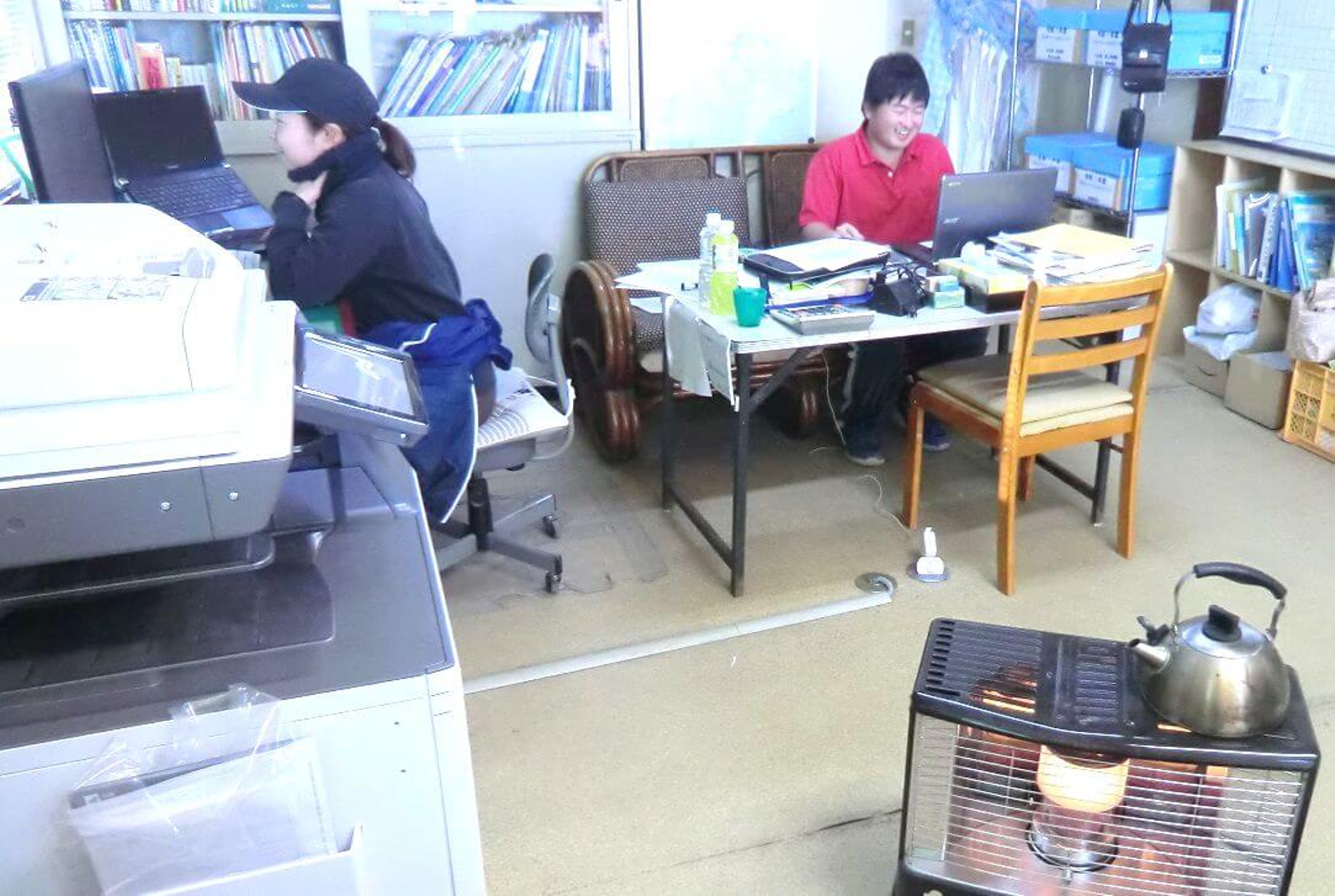 みんなは当然ストーブで暖まりつつ過ごしていますが、笠原は半袖なのです!