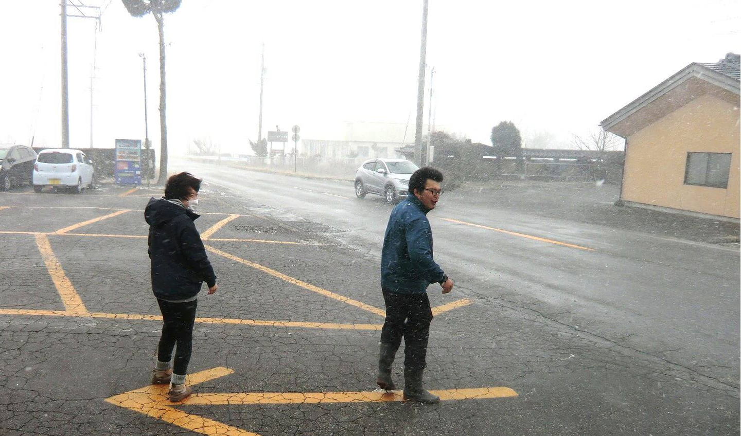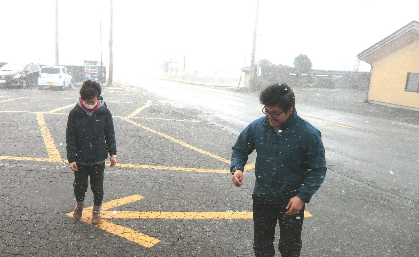 今年は雪も少なく驚くほど暖冬だったにも関わらず、この日に限って午前中は吹雪でした…。