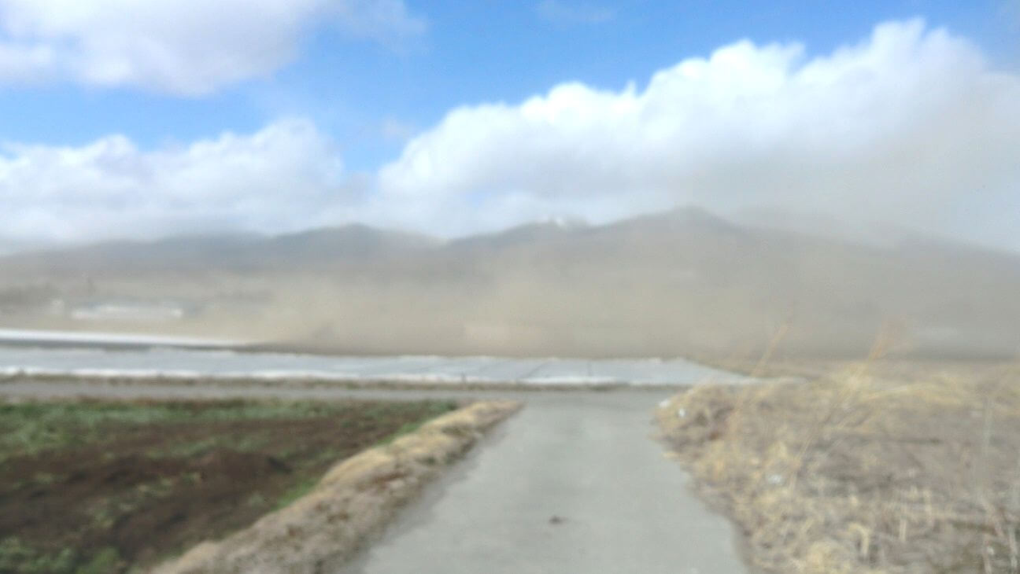 こんな強風と砂埃が、時々ではなく終始吹き荒れているという状況です!