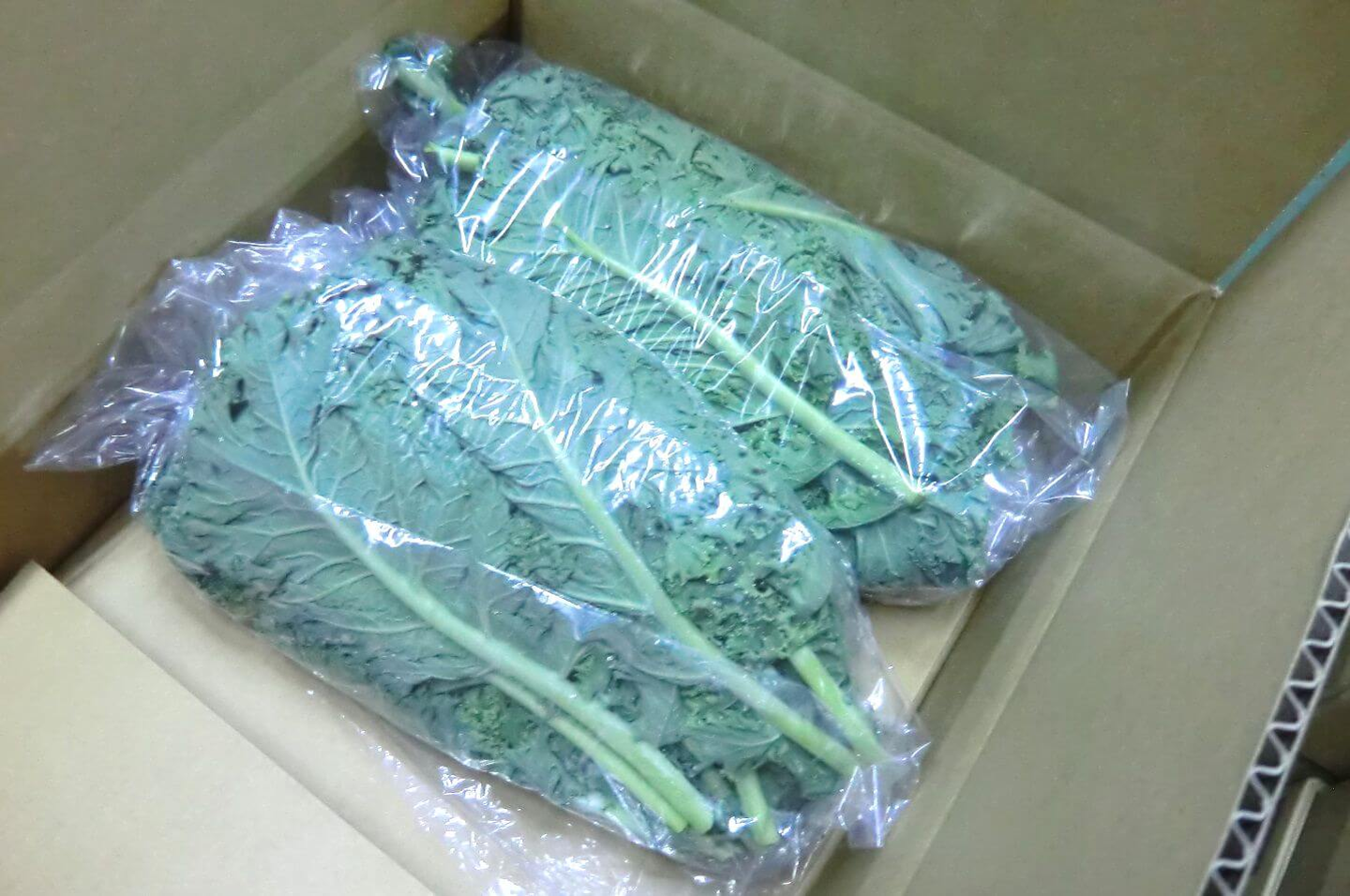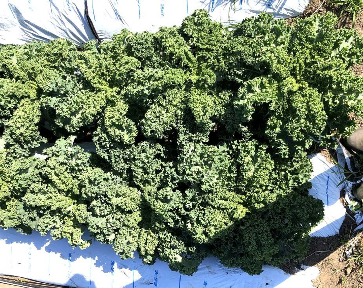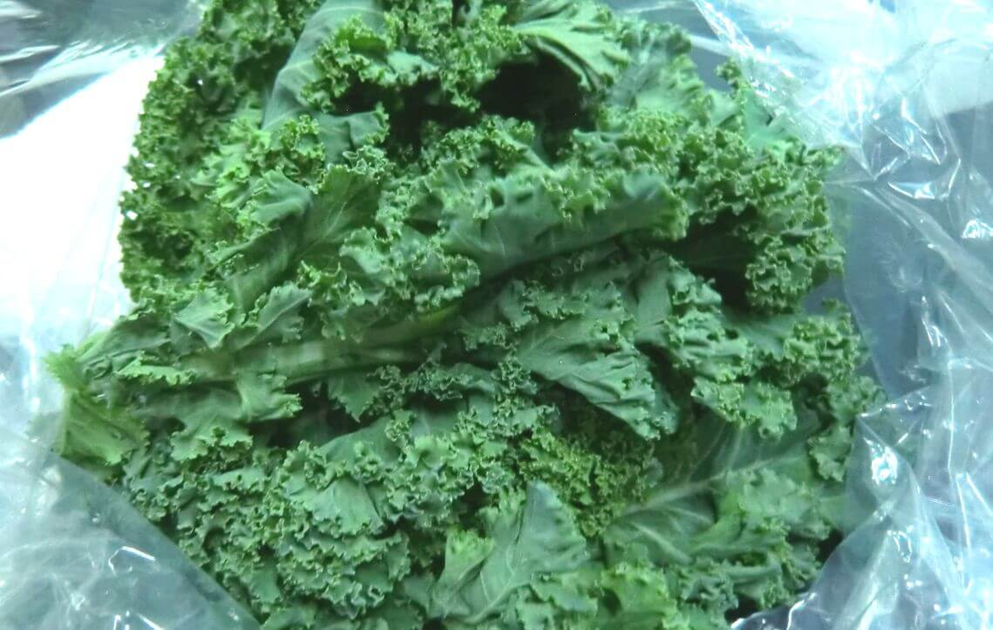 今朝収穫したばかりのケールです。綺麗な緑で美味しそうですね!