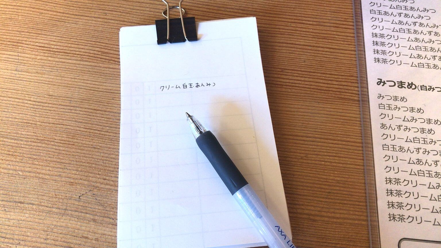 注文の仕方がちょっと変わっていて、机に置かれているメモ帳に自分で記入して店員さんに渡すという仕組みです!