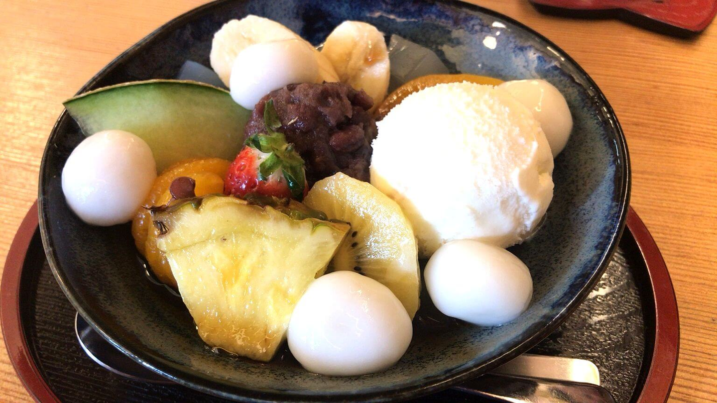 たっぷり乗ったフルーツ、白玉、アイスを堪能することができました!