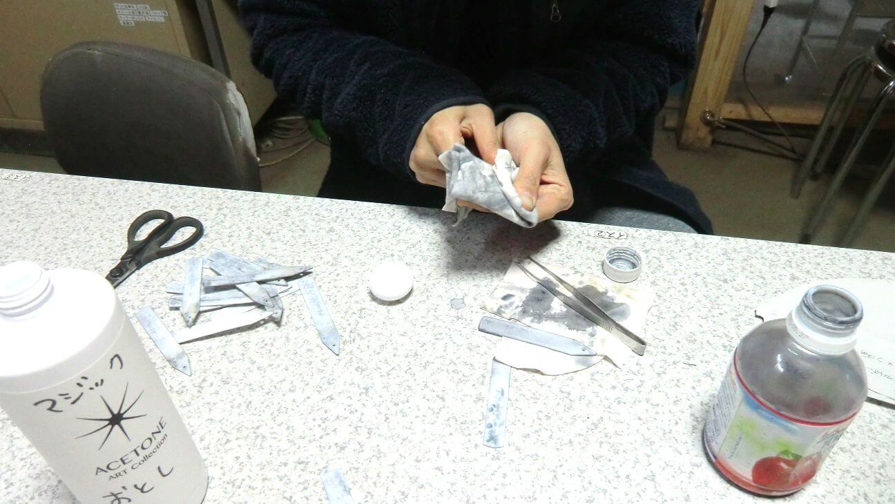 使い終わった苗札をそのまま捨てるのではもったいない!ということで、再利用するためにマジックを落としているところでした!