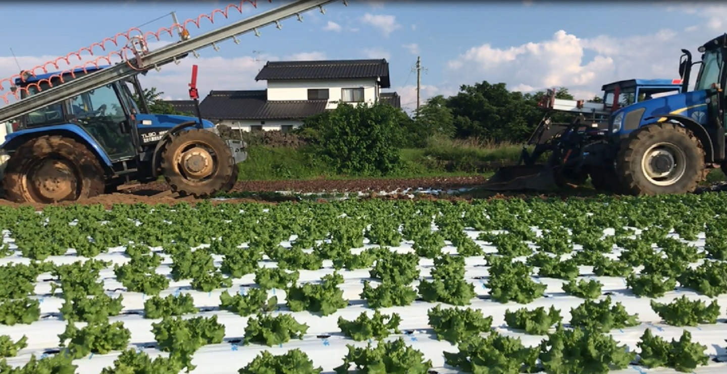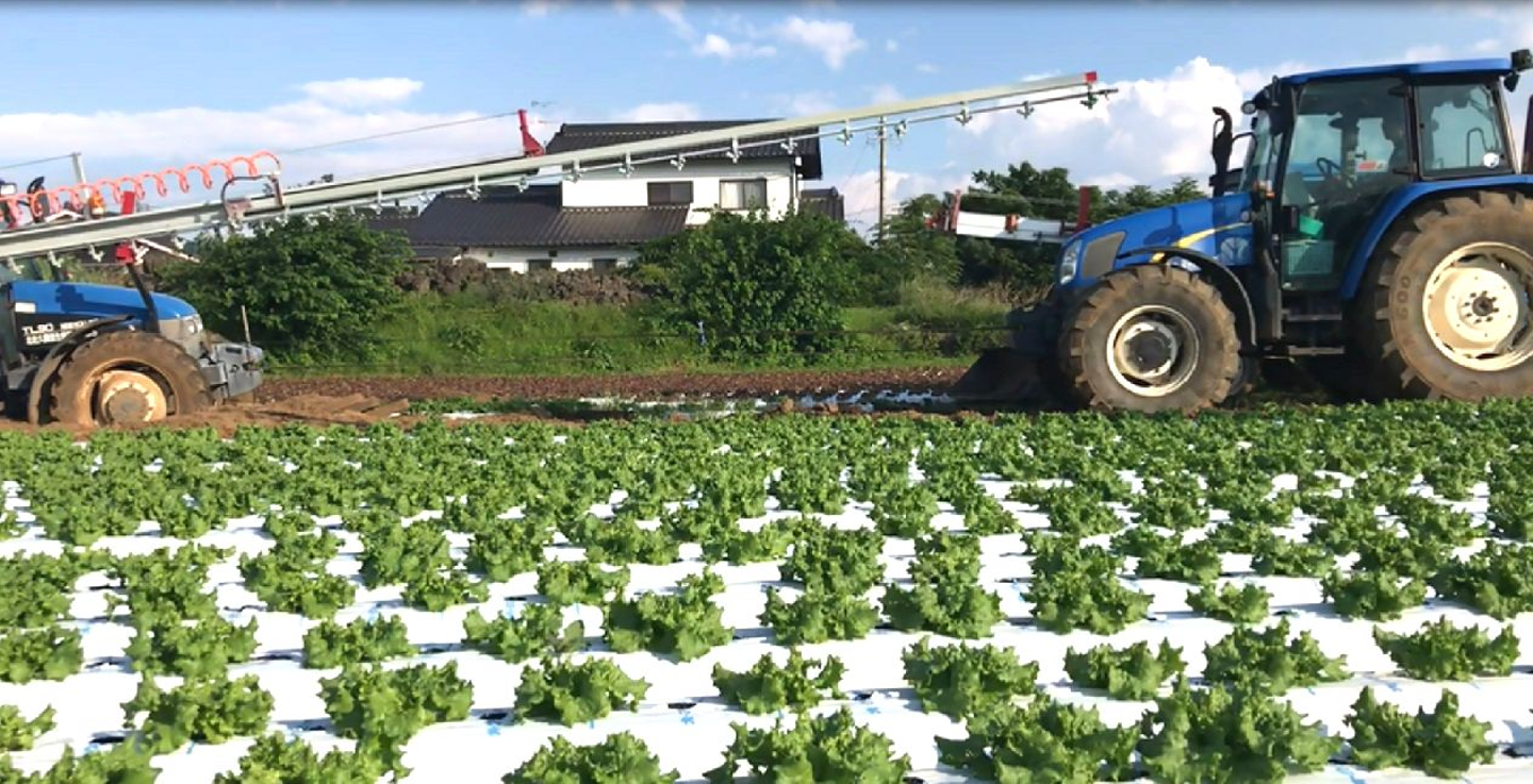 まずは山本が重心を少しでも前にするために、トラクターに装着しているブームスプレーヤーと呼ばれる長い装置を伸ばしています。