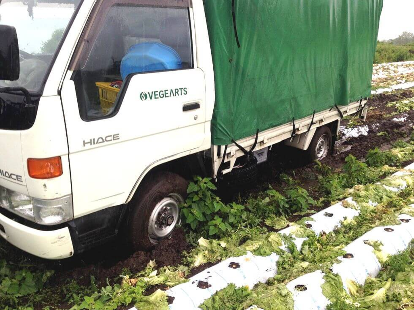 ほっとしたのもつかの間、別の畑ではトラックもスタックしております…。