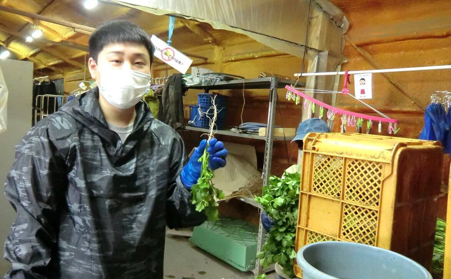 この日はパクチー班での作業に加わっています。