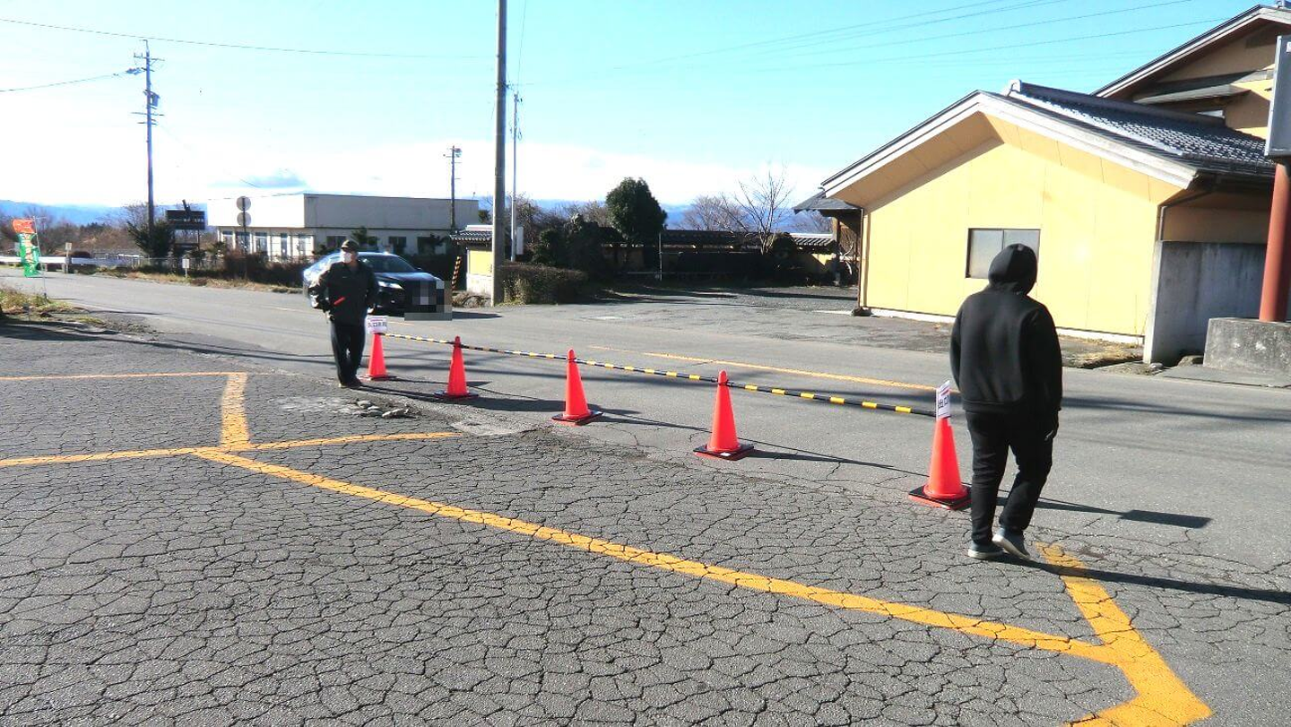 このような訳で、混雑時にはお客様に駐車場でお待ち頂くことになってしまいますので、安全の為 駐車場も整備致しました。