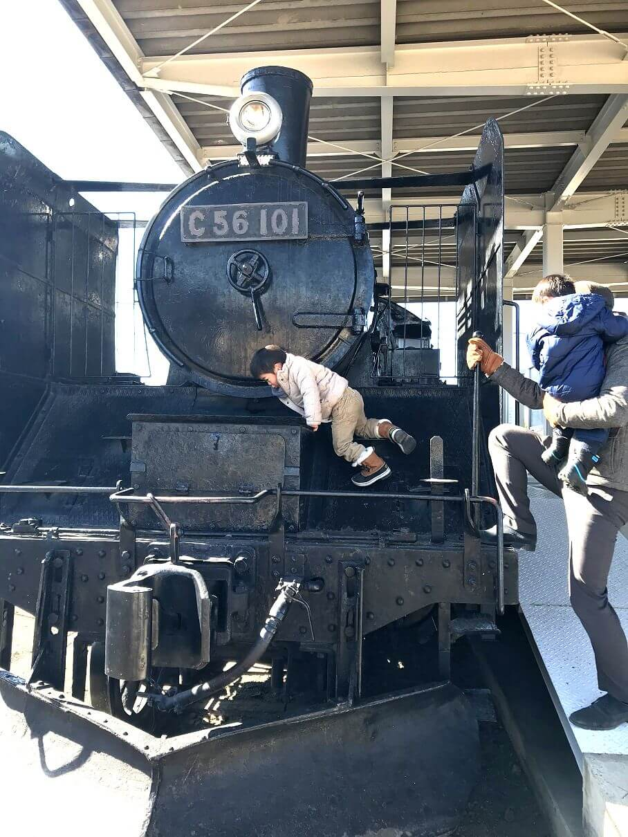 “高原のポニー”と呼ばれて1972年まで小海線で活躍していた蒸気機関車「C56」と、第二次世界大戦まで活躍していたという県下初のガソリンカーである「キホハニ56号」です。