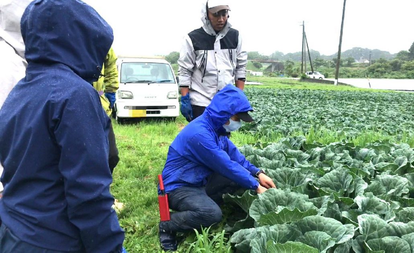 キャベツの収穫が初めてのスタッフもいるため、定植同様まずは代表 山本が説明を行いました。