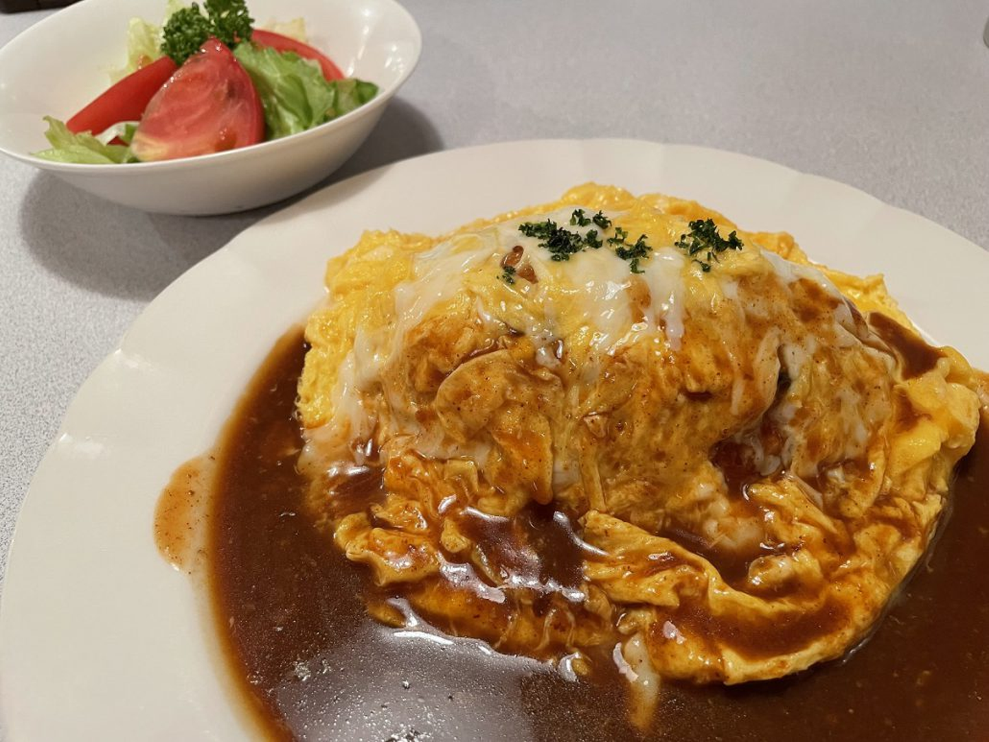 人気商品のオムライスは卵がふわふわで、デミグラスソースが良い味なんです!