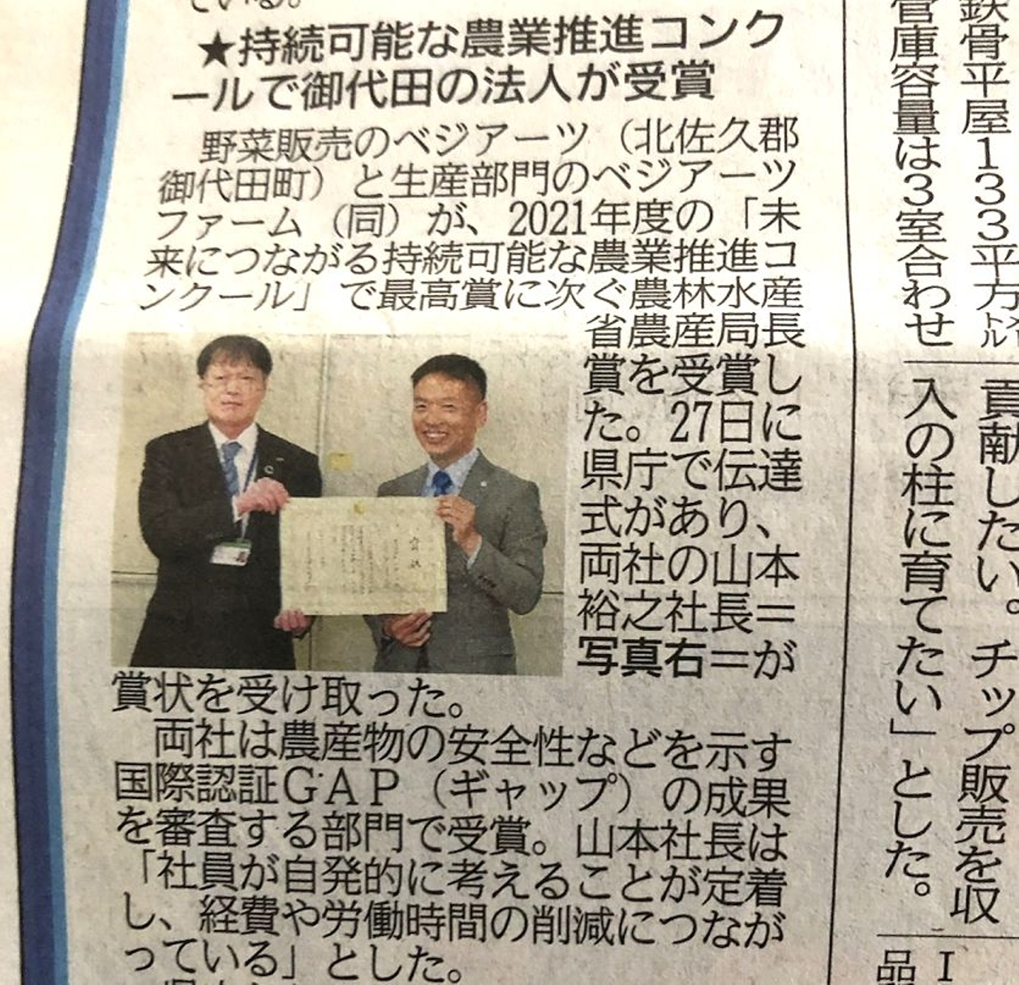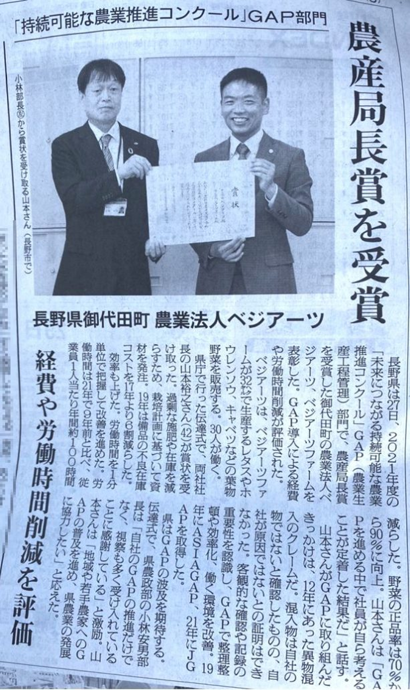 この度受賞した農林水産省 令和3年度「未来につながる持続可能な農業推進コンクール」 に関して、信濃毎日新聞と日本農業新聞に掲載されました!