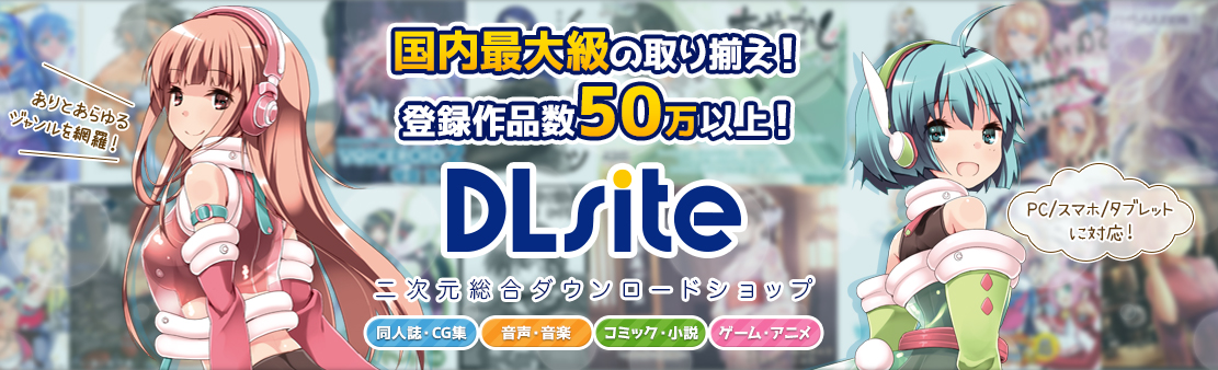 350万ユーザー、4.5万サークル、50万作品を突破!国内最大級の二次元総合ダウンロードショップ!!それが「DLsite」です!
