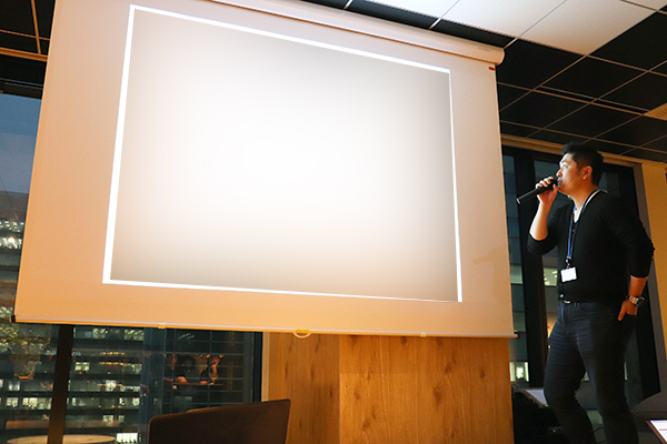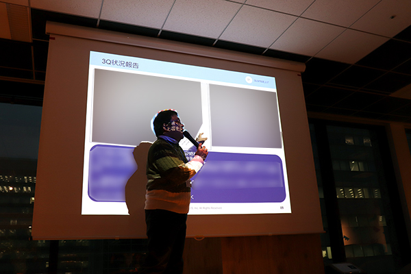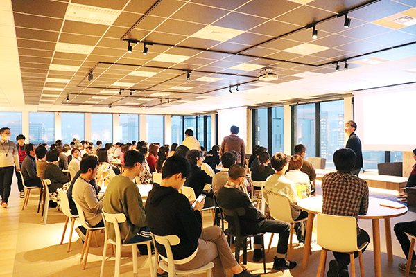 今回はオフィス移転後初となる開催! 広いラウンジで開放感を感じつつも、第3クォーター・各戦略の進捗報告と、第4クォーターの重点項目が発表されるかと思うと、ギュッと心と身が引き締まる思いでした。
