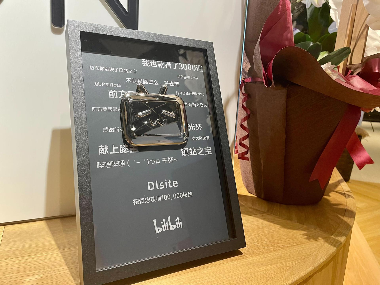 bilibiliから、お祝いとして盾が贈られてきました!