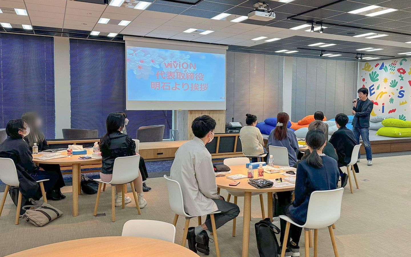 viviON 代表取締役の明石からは、「何に対してもひたむきに挑戦し、皆さんの若い力で組織に良い影響を与えていただきたいと考えています。是非たくさん楽しんで、どんどん成長していってほしい」ということをお伝えさせていただきました。
