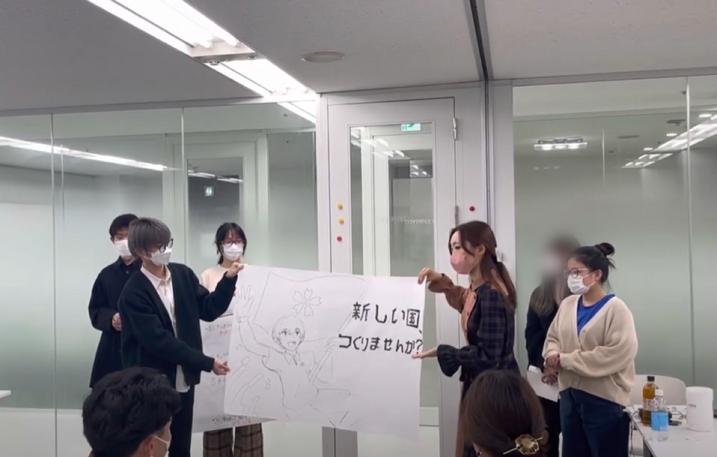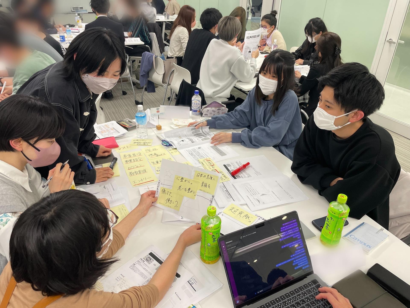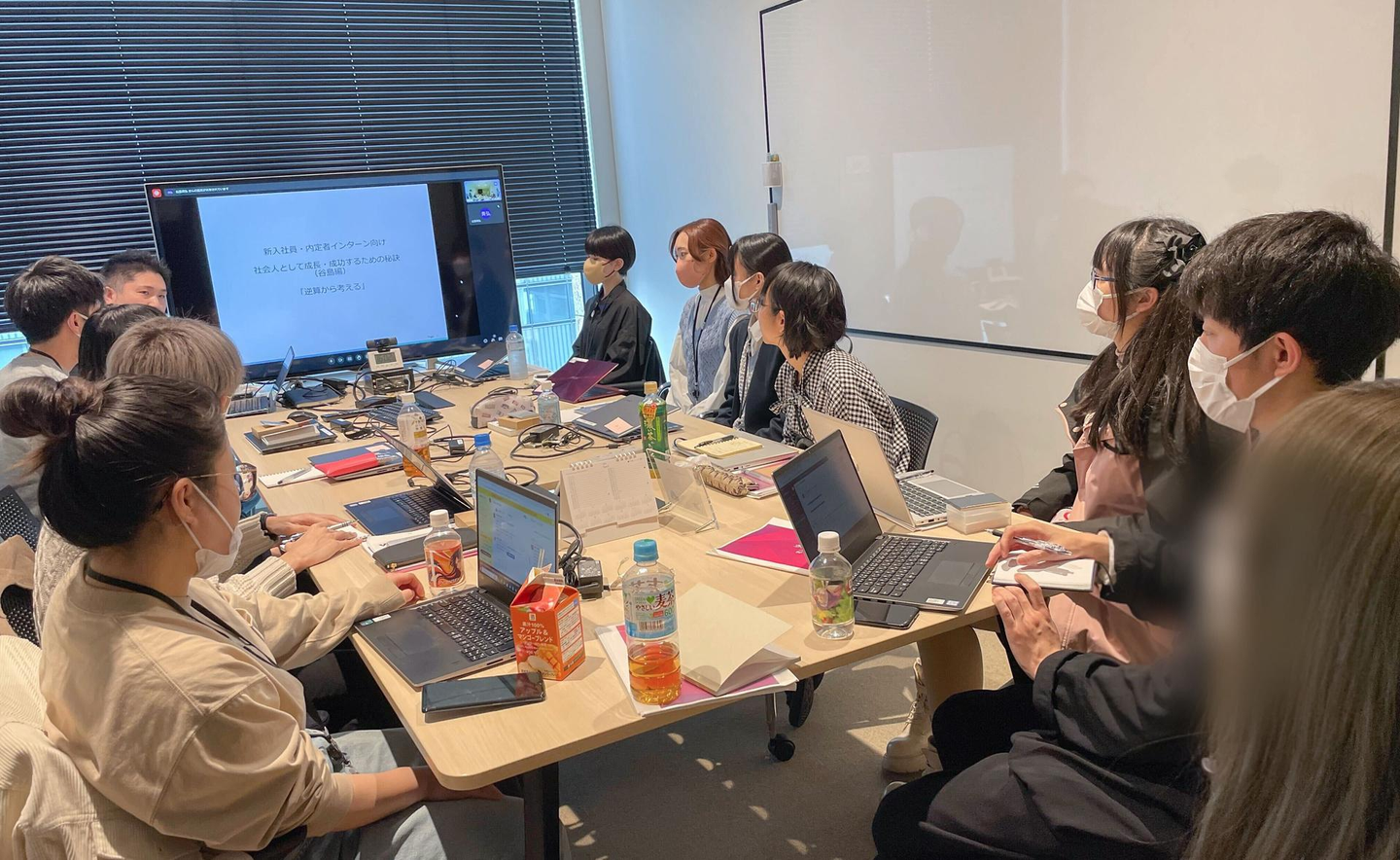 外部のビジネス研修にも新卒全員で参加しました。テーマは「クライアントへの提案」、当社からの新卒メンバーは2組に分かれてワークショップをおこないました。