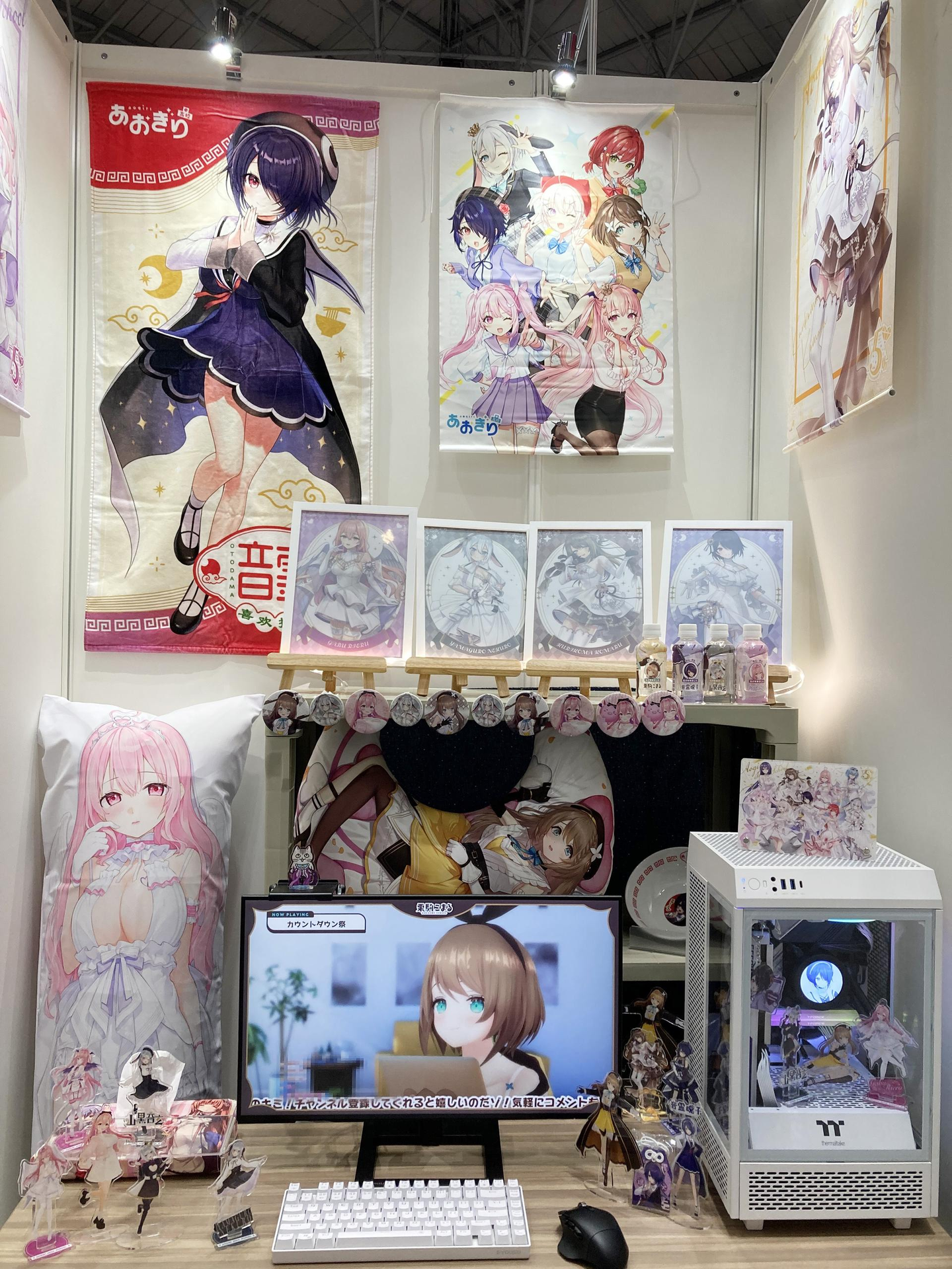 viviONグループのVTuberプロダクション『あおぎり高校』メンバーによるボイスドラマシリーズ『あおぎりレンタルVTuberシリーズ』の作品世界をイメージしたフォトスポットでは、メンバーのグッズに囲まれて配信を楽しむファンの部屋を再現(?)多くの方に撮影いただきました!