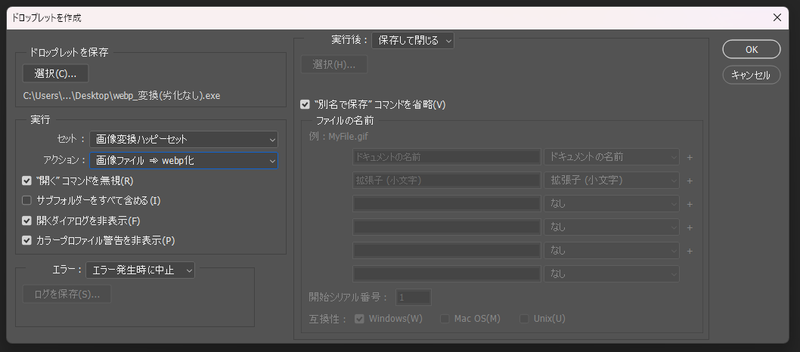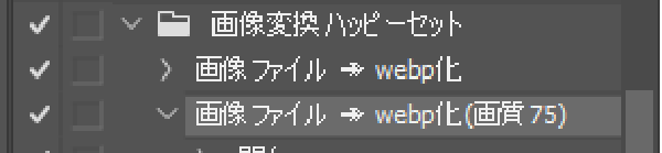Photoshopã§ã¯ãçæã¢ã»ãããONãã«èšå®ããããšã§ãã¬ã€ã€ãŒã«ä»ããããæ¡åŒµåã®ç»åãã¡ã€ã«ãèªåæžãåºããããŸãããWebPã¯ãŸã æªå¯Ÿå¿ã®ããã§ãïŒïŒ
