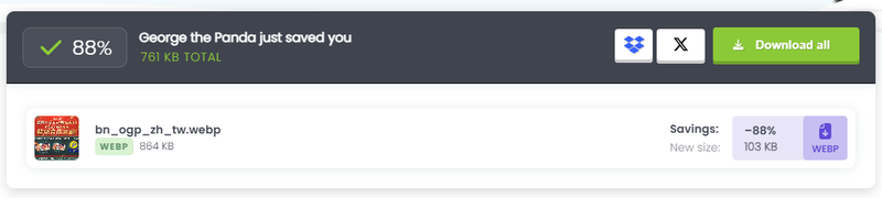 .pngãã¡ã€ã«ïŒ1.16MBïŒâŸ .webpãã¡ã€ã«ïŒ843KBïŒâŸ TinyPNG(103KB)