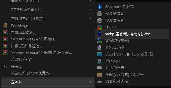 ç»åãã¡ã€ã«ãå³ã¯ãªãã¯ããŠexeã«ã·ã¥ãŒãïŒ