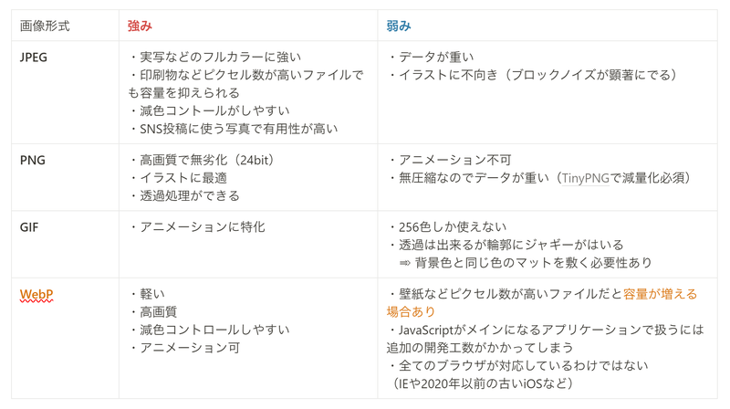 ã»é«éåææ®µã®äžã€ãšããŠç»å圢åŒã¯WebPãæšå¥šããŸãã