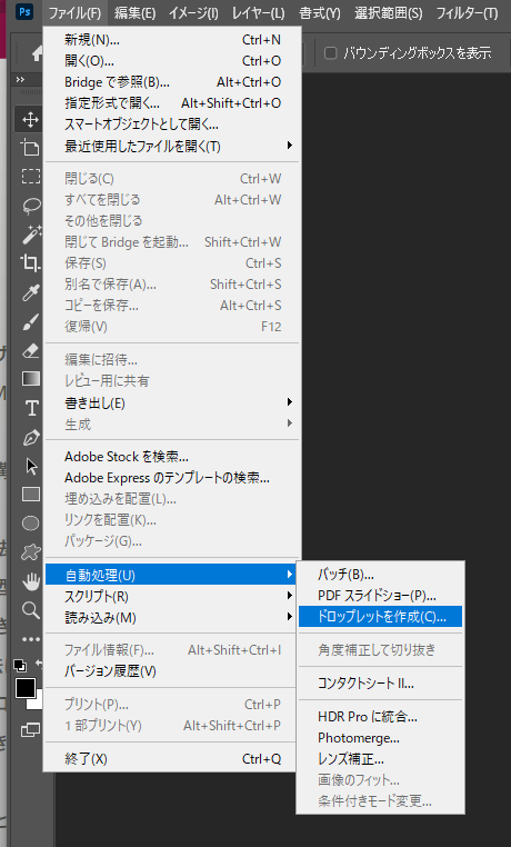 â»èªååŠçã¯Photoshopã®ã¢ã¯ã·ã§ã³æ©èœã䜿ã£ãŠããŸããããåäœããªãå Žåã¯Photoshopã®ããŒãžã§ã³ãææ°çã«ã¢ããããŒãããŠãã ããã