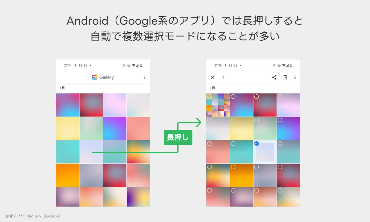 Androidでは長押しで複数選択モードになることが多い