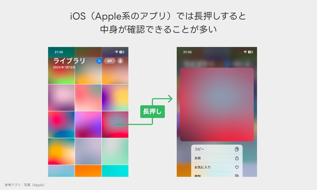 iOSでは長押しで中身の確認ができることが多い