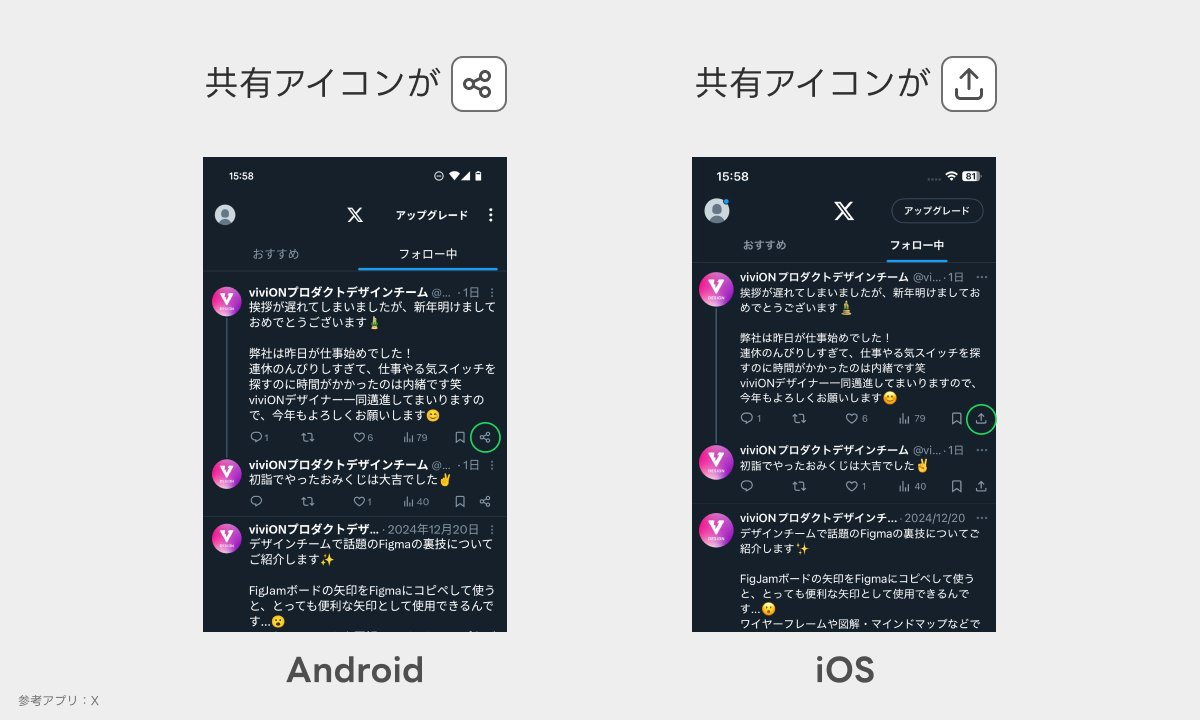 共有アイコンが違う