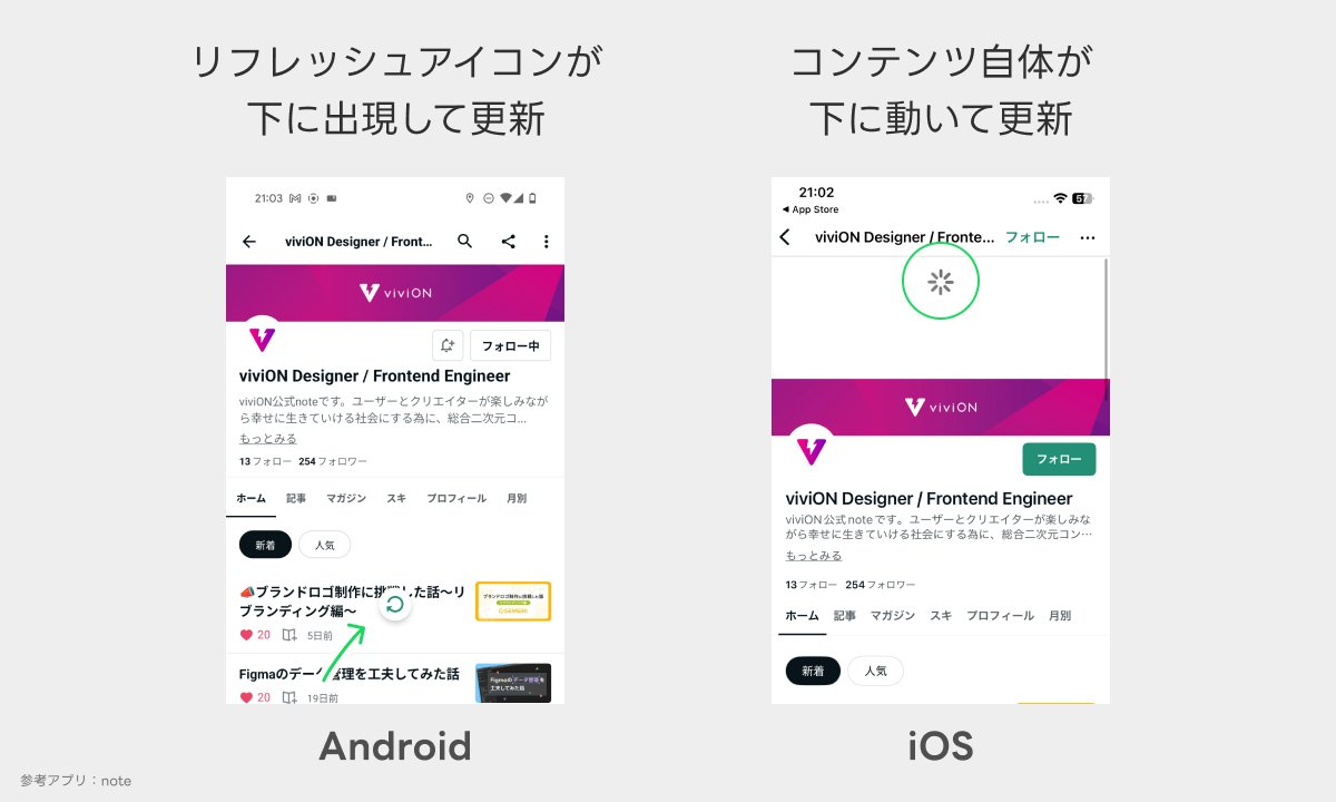 Pull to refresh(引っ張って更新)の際の違い
