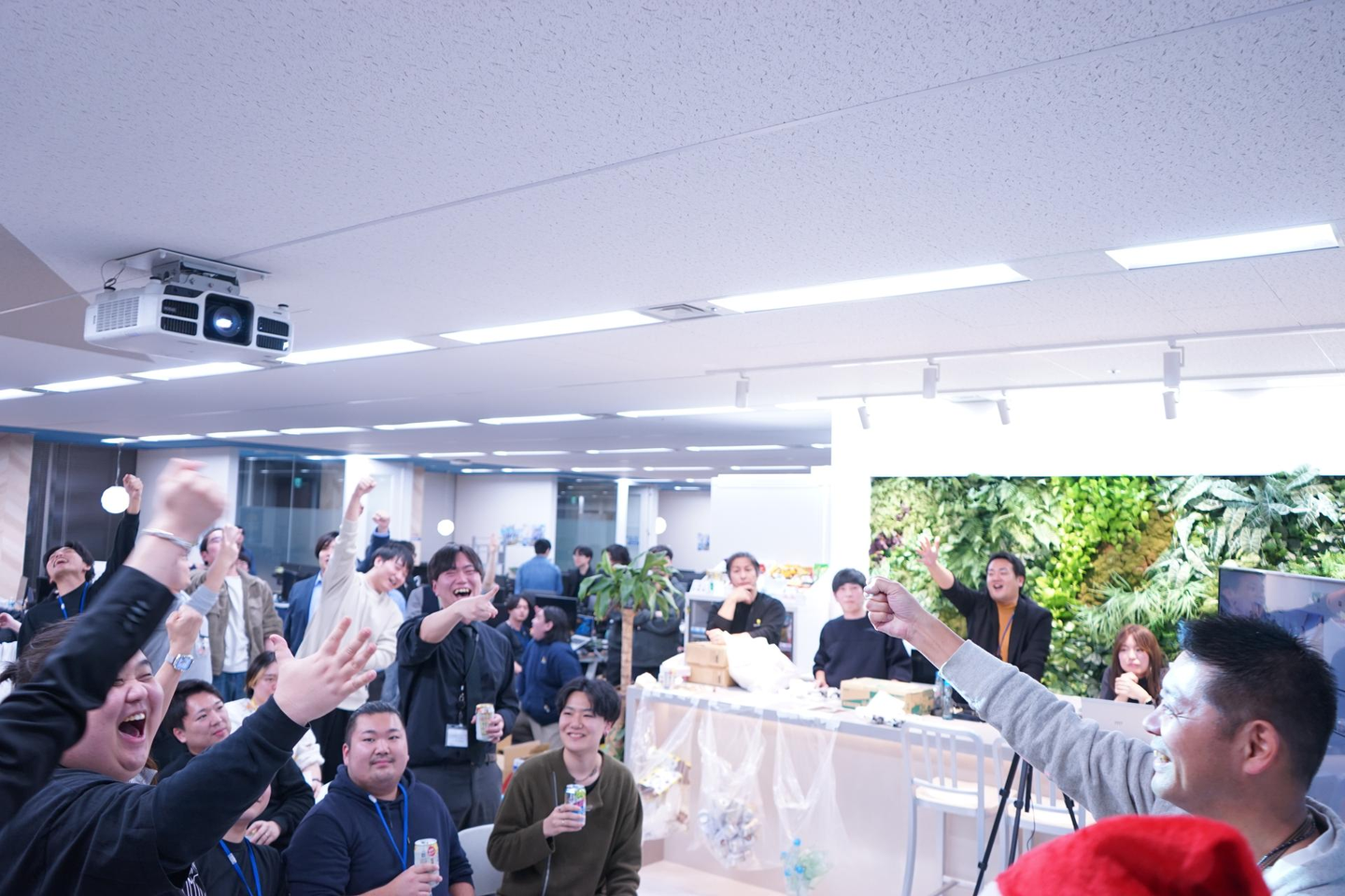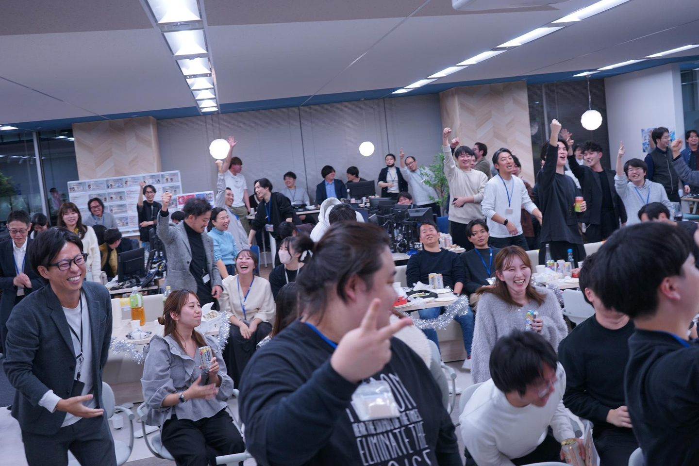 ここに掲載した写真は東京拠点のものですが、関西拠点、福岡拠点ともオンラインで接続しており、まさに会社全体の一体感を高められるイベントでした!