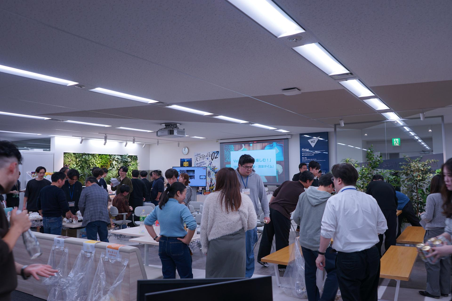 ここから、実際の時系列に沿ってHave Fun Partyの流れをご紹介します!各社員が自分のペースで飲食や歓談を楽しみつつ、運営が準備したパーティーコンテンツに参加する形式の催しです。