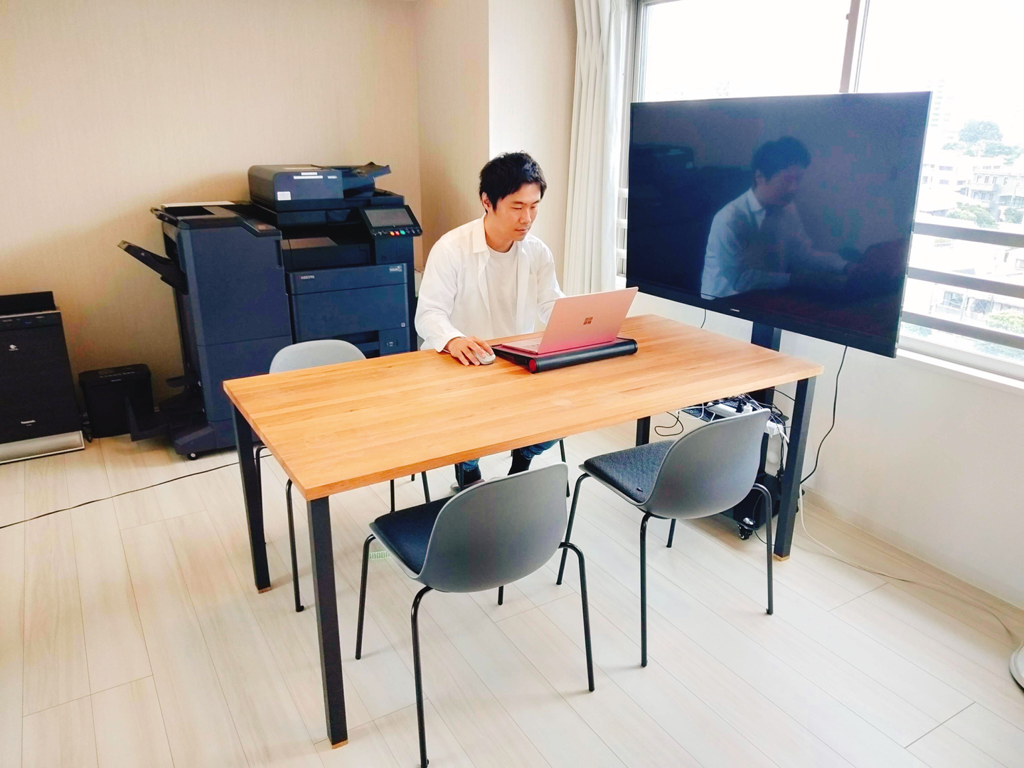 社員は来客時などでオフィスの利用は可能ですが、フルリモートワーク体制ですので基本的にはそれぞれの自宅など好きな場所で働いており、オフィスには社長の関が1名で仕事をしている事が多いです。