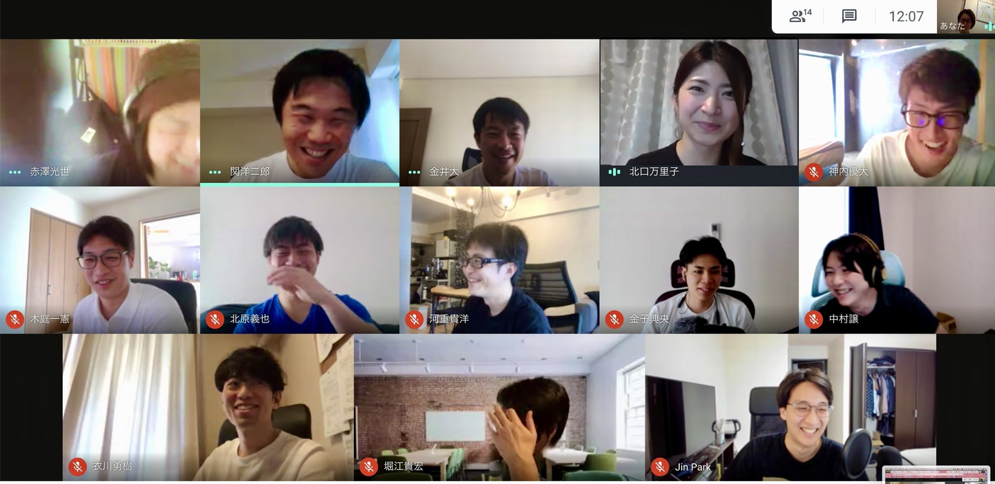フルリモート開始以前も月に一度開催していた全社会議は、コロナ禍でも引き続き行っています。内容は、プロダクトの開発状況や今後のビジョン、そして各メンバーにスポットを当てる企画などなど。なるべく全メンバーが「傍観者」ではなく「参加者」になれるような仕組みを入れながら行っています。フルリモート下での全社会議運営については別記事にて紹介する予定です!