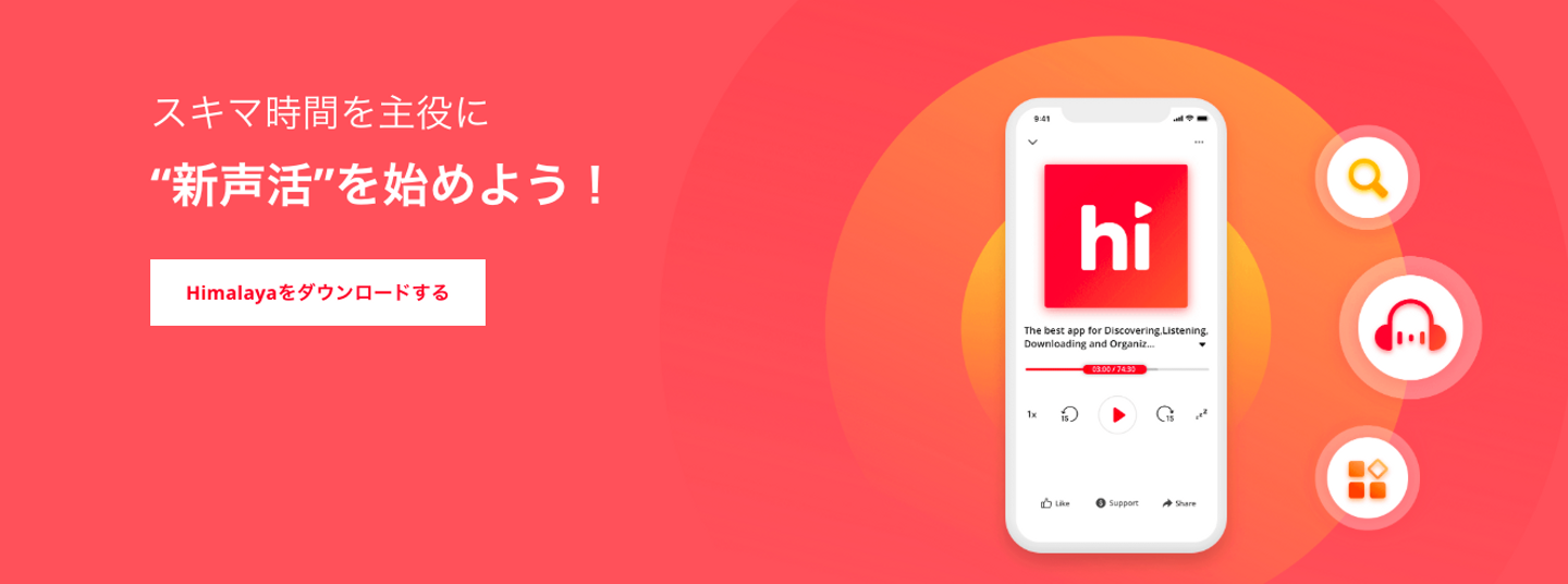 「himalaya(ヒマラヤ)」は、“「声」って、すごいじゃん。”というブランドメッセージを掲げ、音声の価値の最大化を推進する音声プラットフォームです。簡単に言うと、インターネットラジオ局みたいなものだと思っていただければ、(正確には少し語弊がありますが)最初の理解としてはだいたいOKだと思います。
