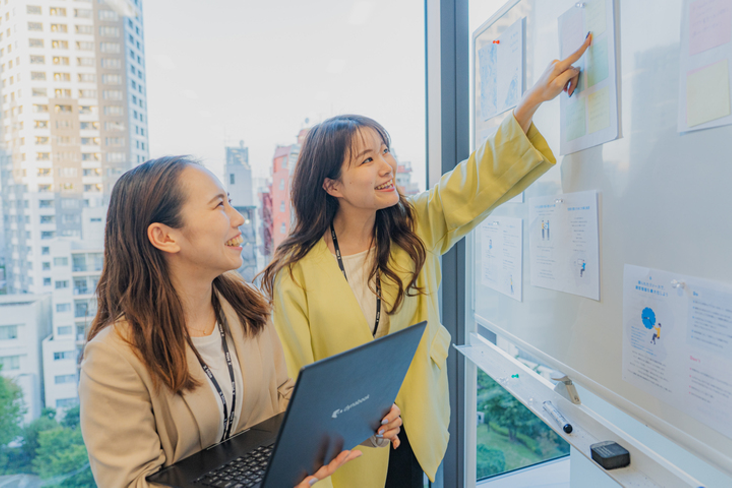 「ノンデスク産業は未経験で不安」や「ベンチャーマインドはガツガツしてそうで、ついて行けるか不安」と思われる方も多いかと思います。私もベンチャー企業は初めてだったので、正直不安でした。実際には、人材紹介やノンデスク産業は未経験の方が多く、研修制度も整っているので、未経験でもスタートしやすい環境です。また、コミュニケーションの多い環境ですので、みんなで声を掛け合いながら切磋琢磨しております。