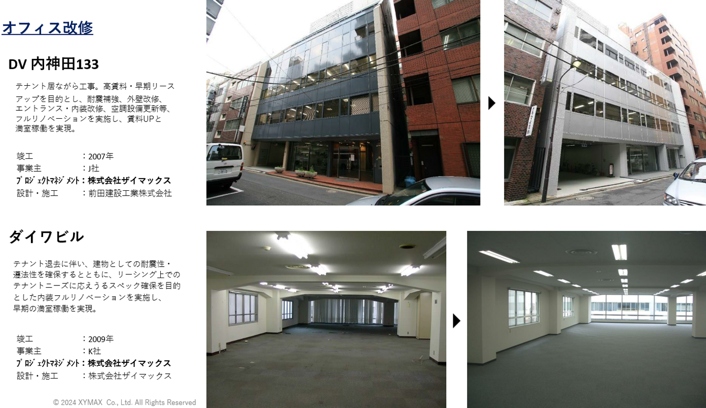 ザイマックスの企画プランニング部・建築プロジェクトマネジメント部で行う、プロジェクトマネジメント業務について、こちらで紹介させていただきましたが、具体的な案件について、一覧でご紹介します。
