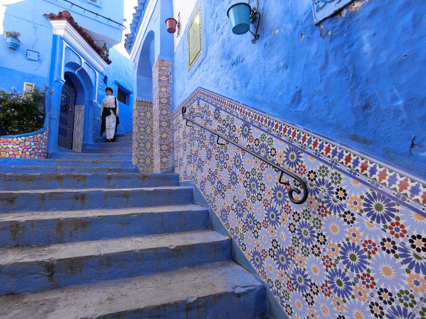 シャウエンは、家の壁も道の階段も様々な青色で染められています。