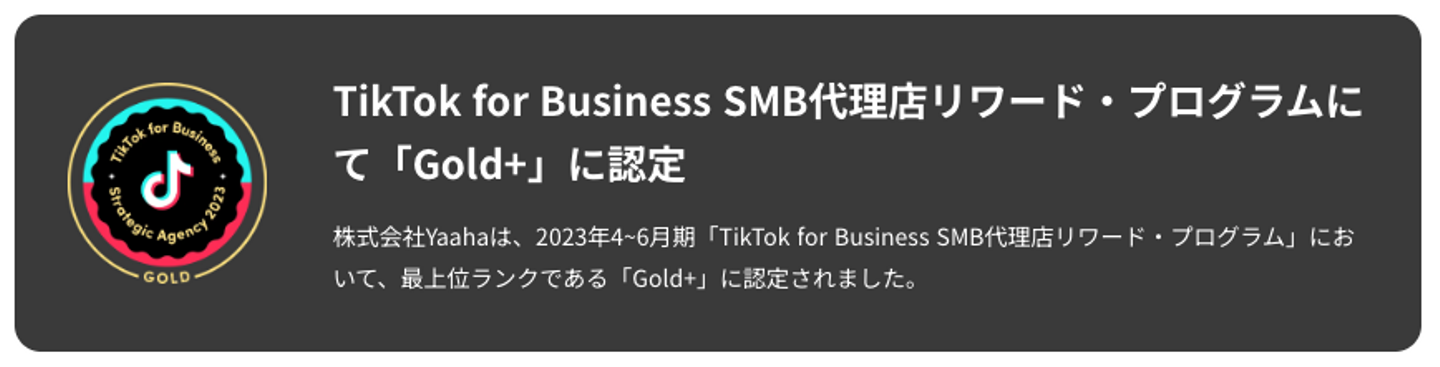 ・TikTok for Business SMB代理店リワード・プログラム 最上位ランク「Gold+」に認定