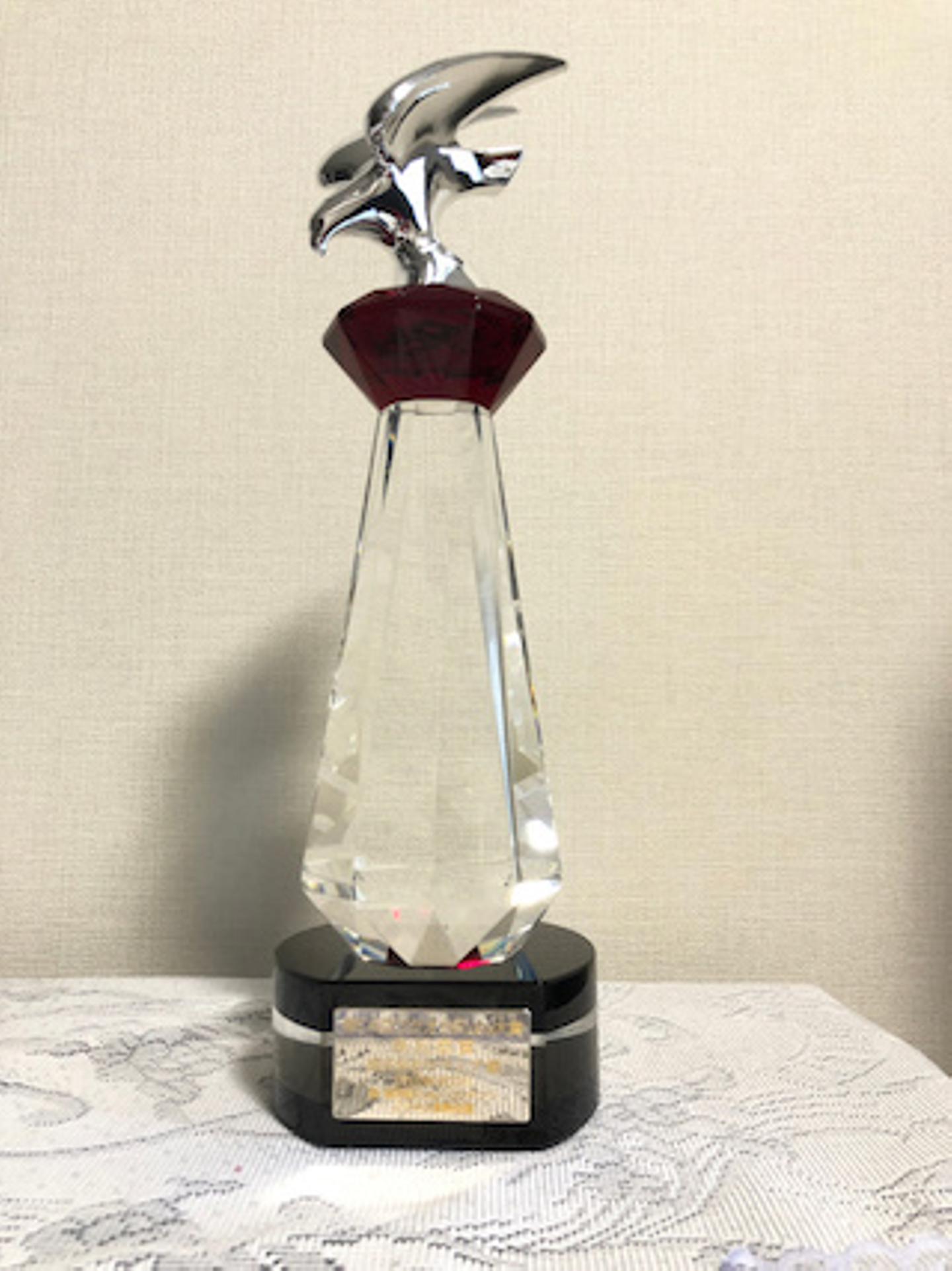 ※リモートワークが続きまだ会社に飾れていないトロフィー。デザインがカッコイイ。