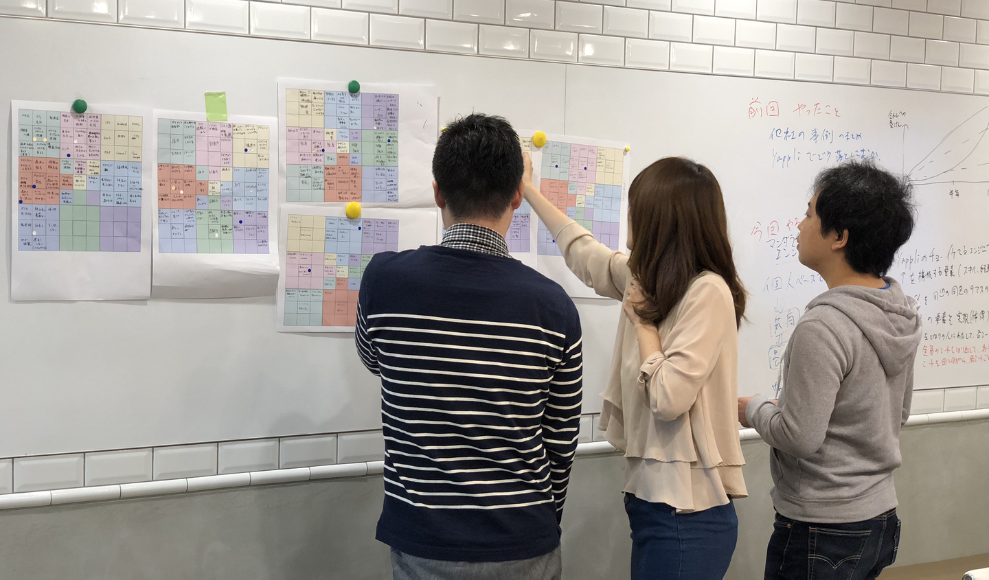 (石村)1回目の話し合いの振り返りでは、ファシリテーションの知識が豊富なエンジニアに参加してもらって、2回目のプランを練りました。そこで、次回は参加者全員の意見が出やすいようにマンダラートを使って話し合うことになりました。1回目に比べて様々な意見もでてくるようになったのと、少しずつ目線が合うんじゃないかという予感も持てたので、今後はより相互に率直な意見交換をできるような場にしていきたいと思っています。