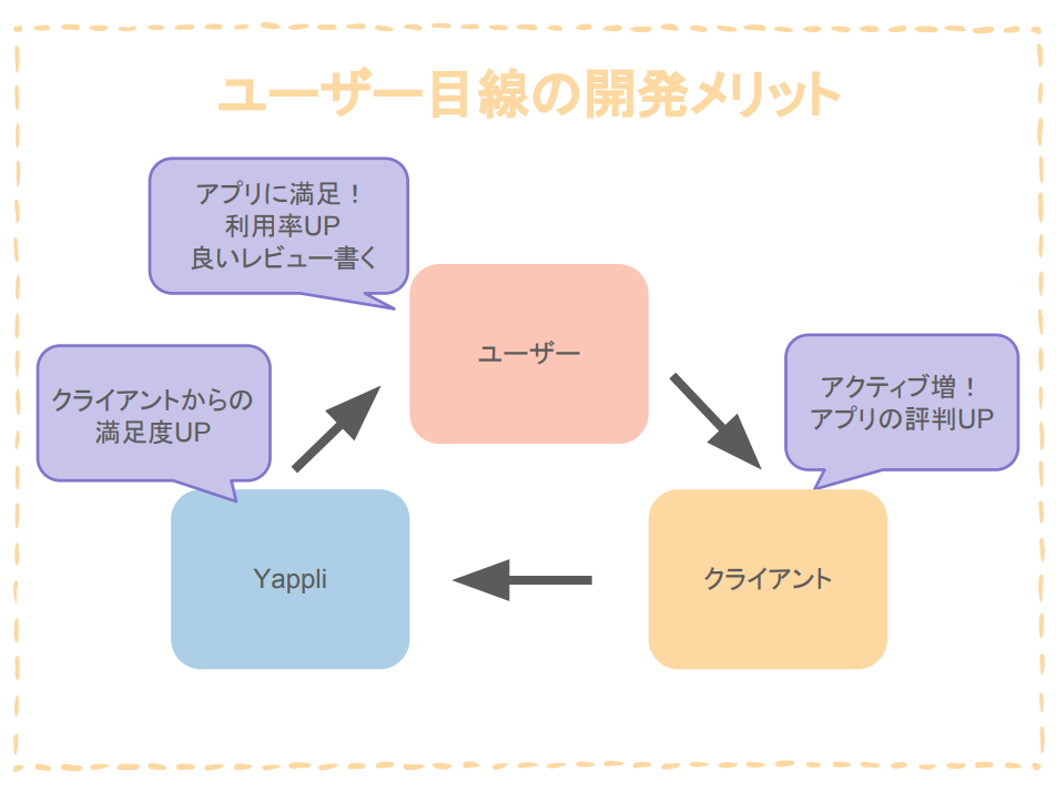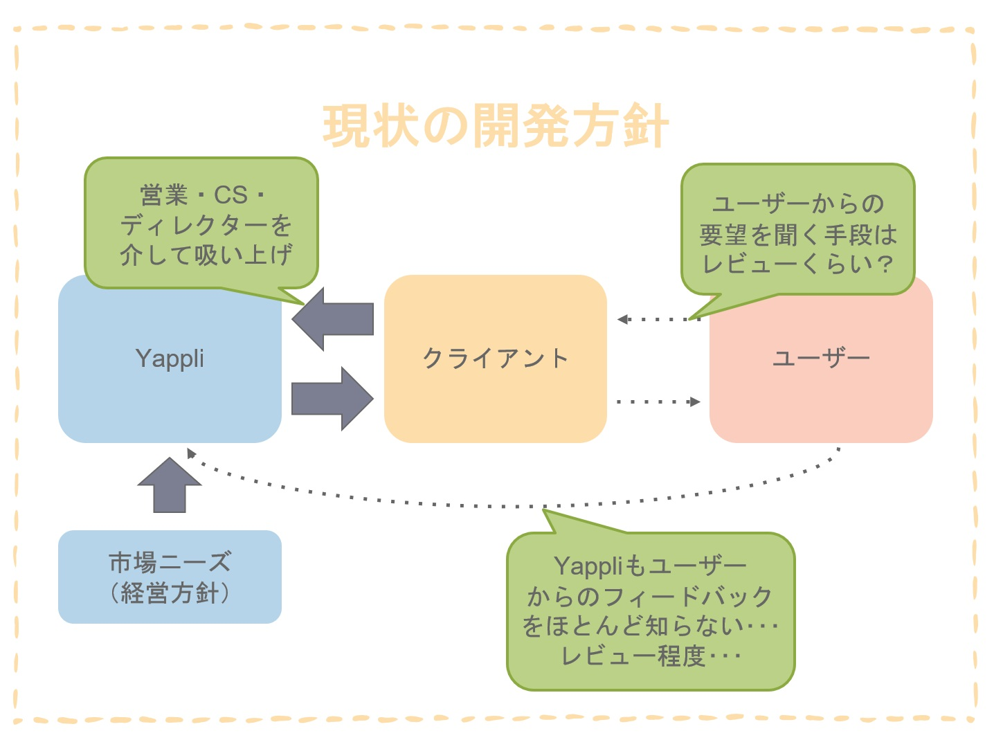 当然、クライアントがYappliプラットフォームを通じて作ったアプリには、それぞれその先にアプリを使うエンドユーザーがいます。クライアントの声と、実際に使っているエンドユーザーの声をバランスよく反映させていくことが、今後の開発において重要になってくると感じていました。