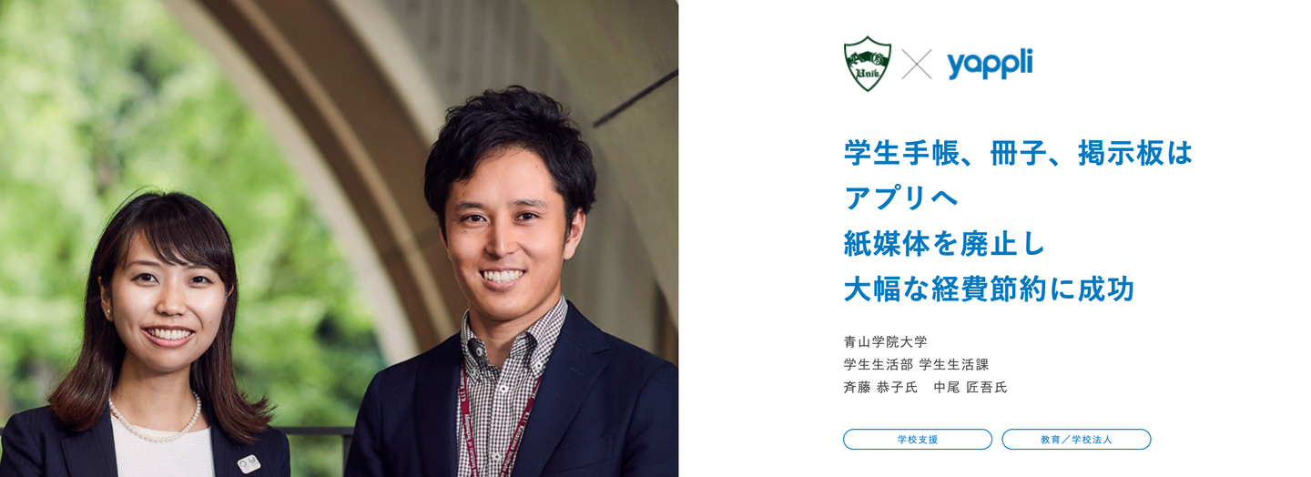 学校だと、僕が担当していたのは青山学院大学様。これまで学校から学生への案内は、学内の掲示板がメインでした。そこで、わざわざ見に行かないとわからなかった情報を、スマホ上で簡単に学生に伝えられるようアプリを制作したんです。たとえば当日の休講情報など緊急で伝えたいことでも、アプリのプッシュ通知を使えばすぐに知らせることができます。