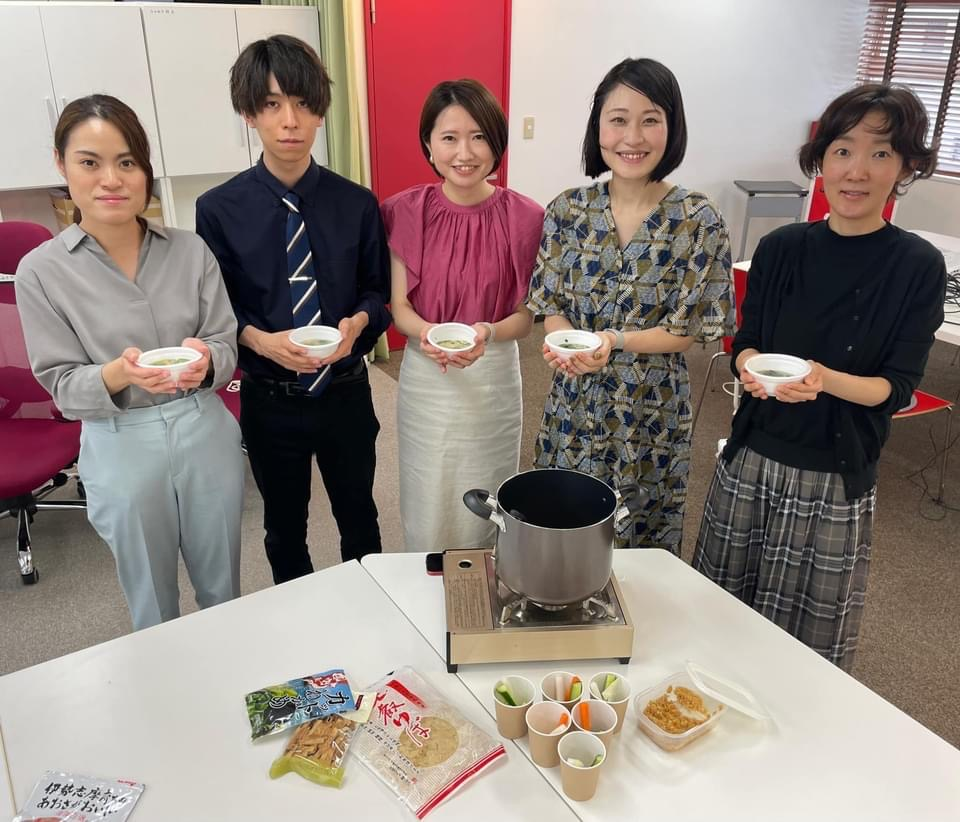 会社にある鍋で味噌汁を作り、野菜スティックなども用意して、味噌の食べ比べをしました!