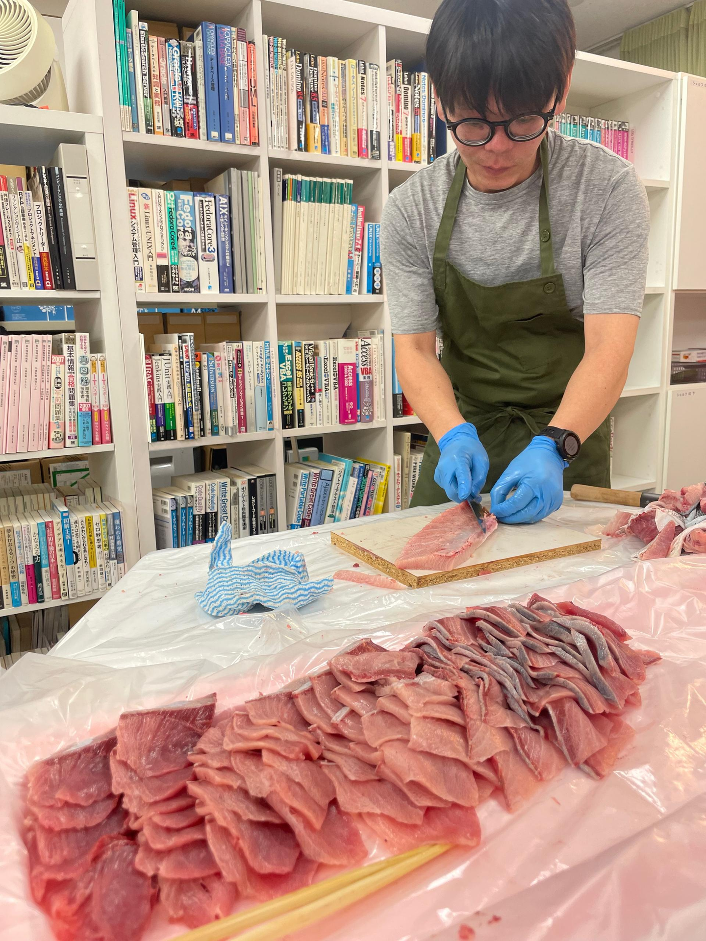 そして寒ブリは、なんとオフィスでさばいてくださいました!!!!激熱!!!笑