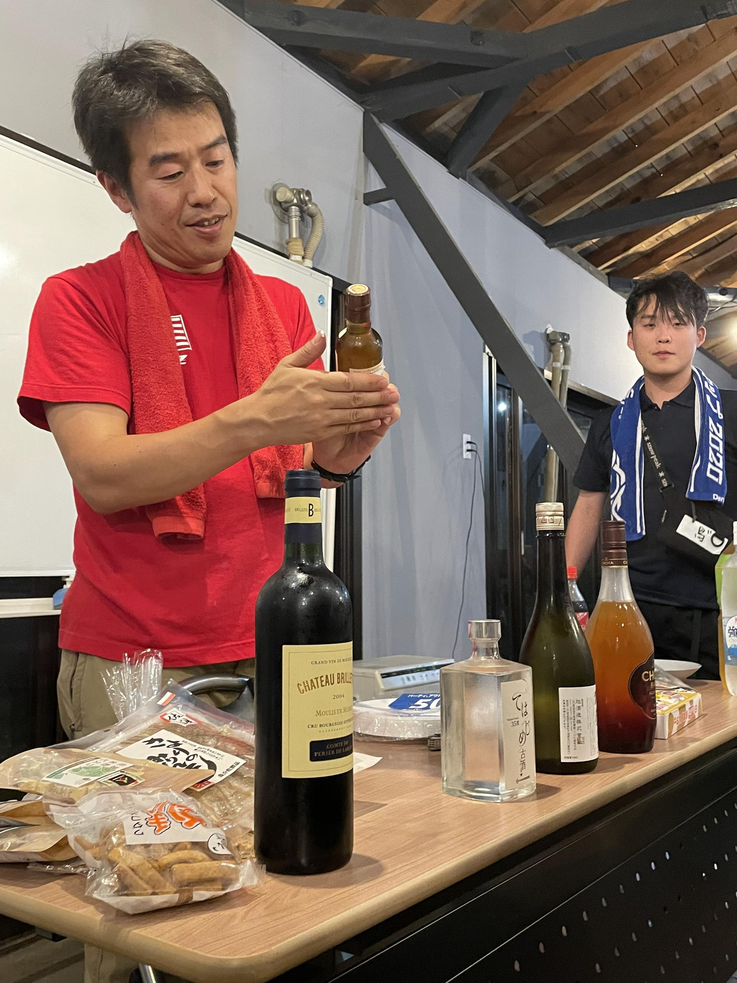 社長が事前にこの時のために準備した美味しいお酒を紹介!日本酒、ワイン、ウイスキー、梅酒、泡盛などなど!!本当に飲兵衛が多い会社ですね!(笑)