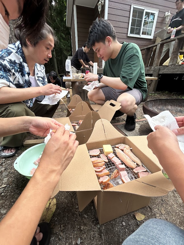 さて、夜になると、BBQタイム!!!自分たちで、野菜を切って、準備するところから始めます!