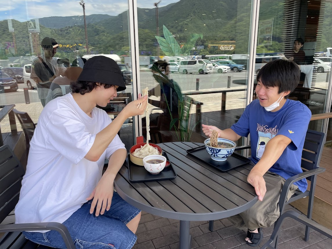 途中のパーキングエリアで休憩&ランチ!既に、たのしそう(笑)