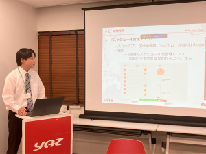 YAZ内定後の大きな特徴としては、入社前の在学中に3ヶ月間のアプリ開発研修があることだと思います(10月~12月)。もちろん、在学中なので学業が本業なので、学業と両立して研修をこなすことになります。この研修のポイントとして、実際に開発を行うことでアプリ開発の流れをつかむことに加え、チームとして取り組むことを覚えるというのがあると感じています。単に課題が提示されて自分でそれを期限までにやる、というような内容ではありません。まずはスケジュールをなるべく細かくたて、取り組む内容や進捗などをメンターの方に報告したり、途中でなにか不明なことや変更点があればそれを相談したりして、コミュニケーションを取りながら進めていくというのが大きな特徴かなと思います。こういった、報連相を常にしながら作業にとりかかるというのは言われて理解するというよりも、実際に実践しながら肌感覚で覚えていかないと身につかないようなことだと思うので、大事な機会だと思います。研修期間の10月~12月というのは本業である学業が慌ただしくなる期間でもあり、両立をさせることが1番のいまの私の目標です。このいまだからこそ、取り組むことで得られることがあると思うので、まだ研修は始まったばかりですがスケジュールを確認しながら気持ちを切り替えながら集中して3か月取り組めたらなと思います。